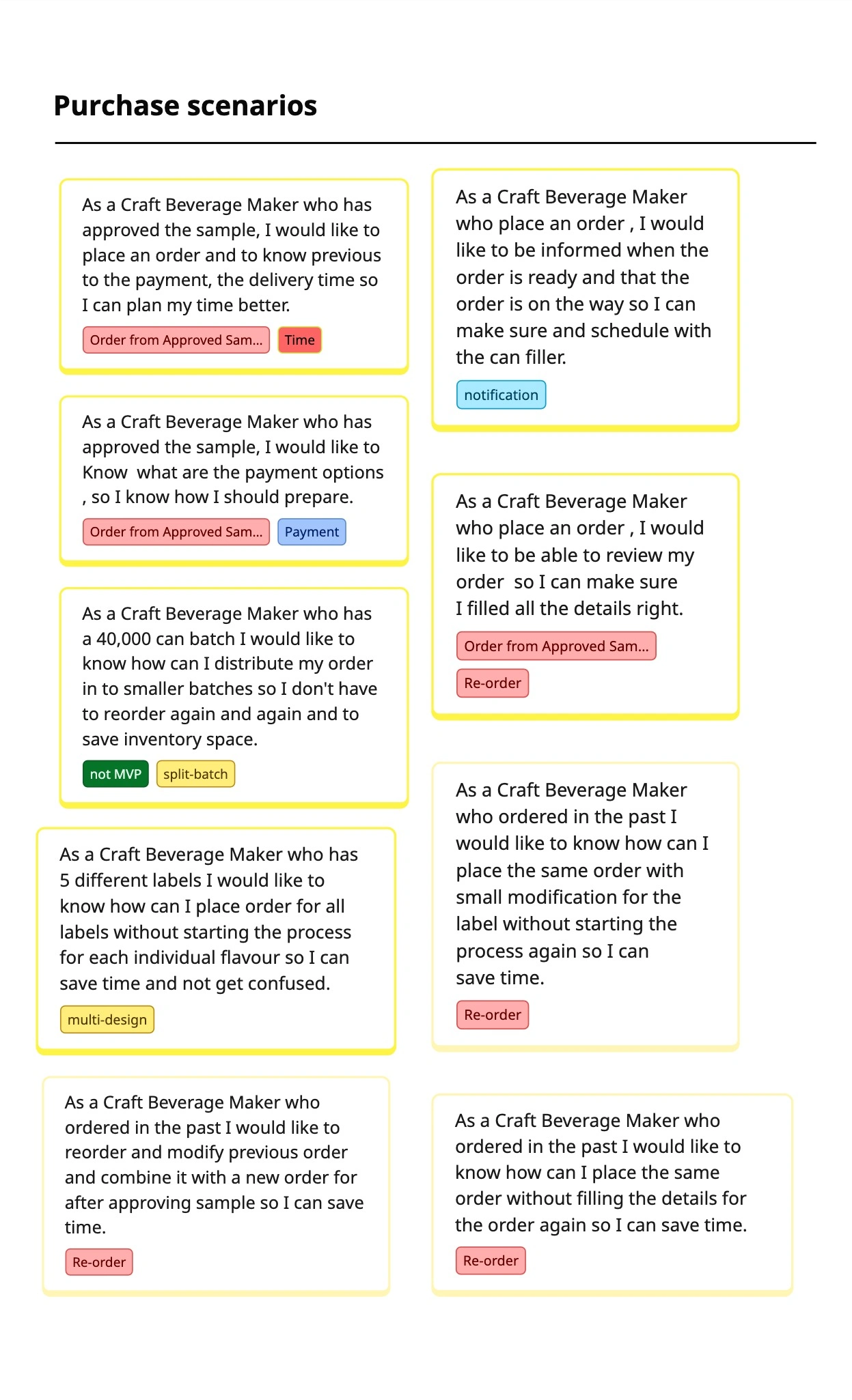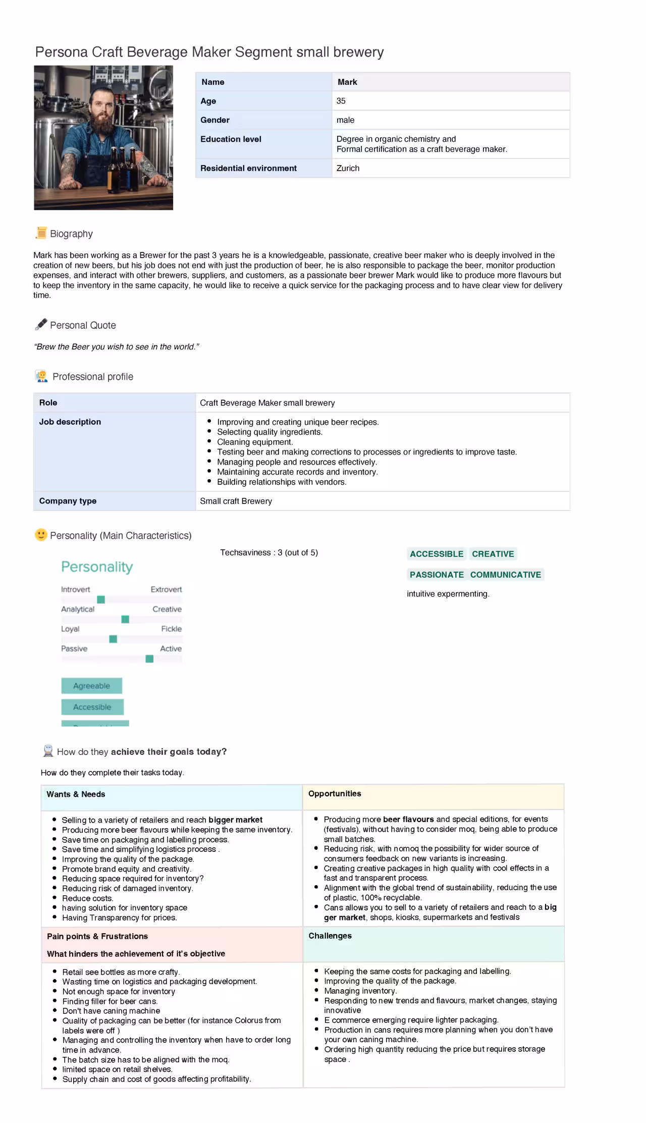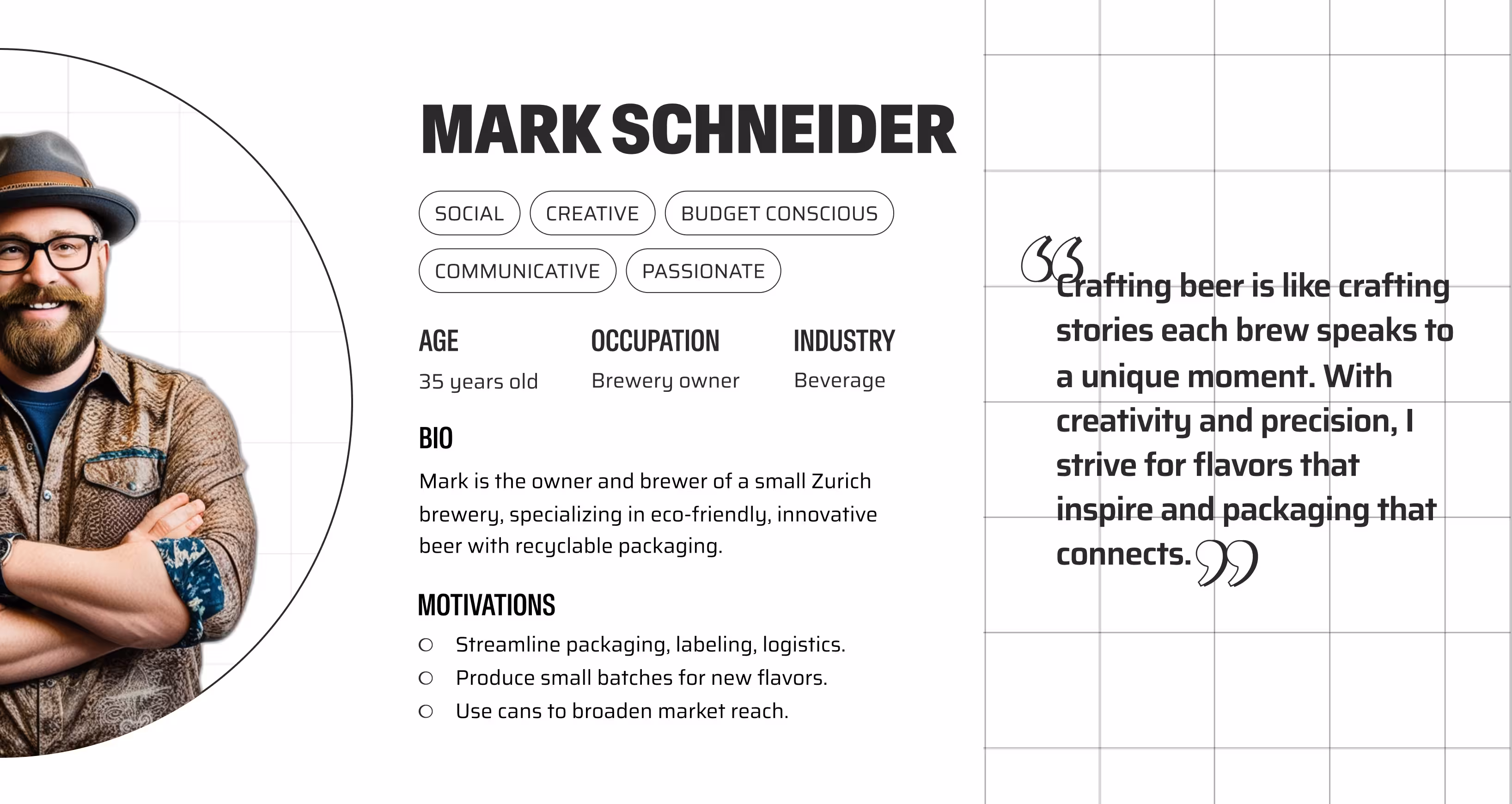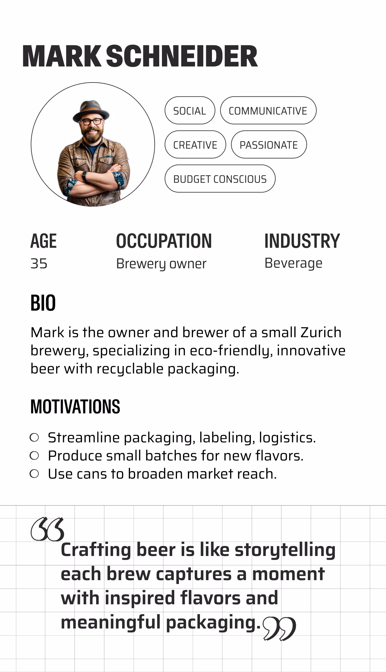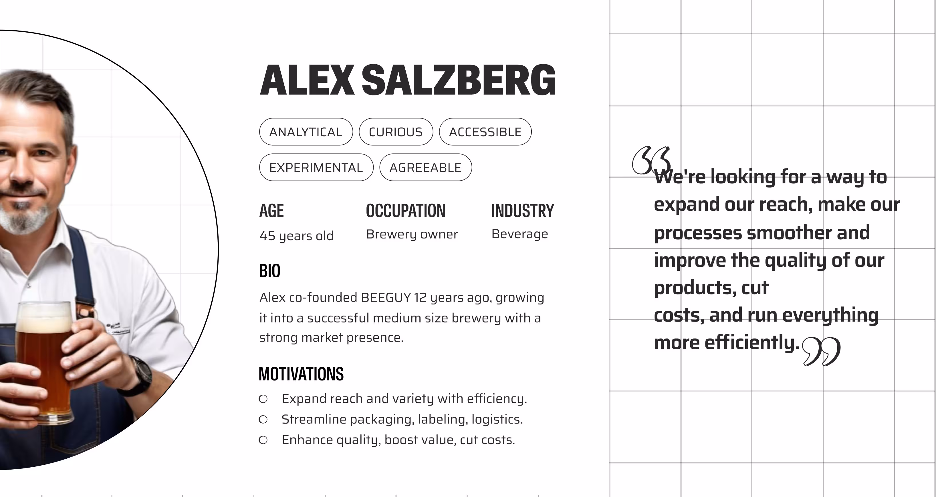 Following a series of user interviews with small brewery owners and beverage brand managers, I identified two distinct user types with different goals, motivations, and pain points. These personas helped clarify user needs and informed key design decisions throughout the process.