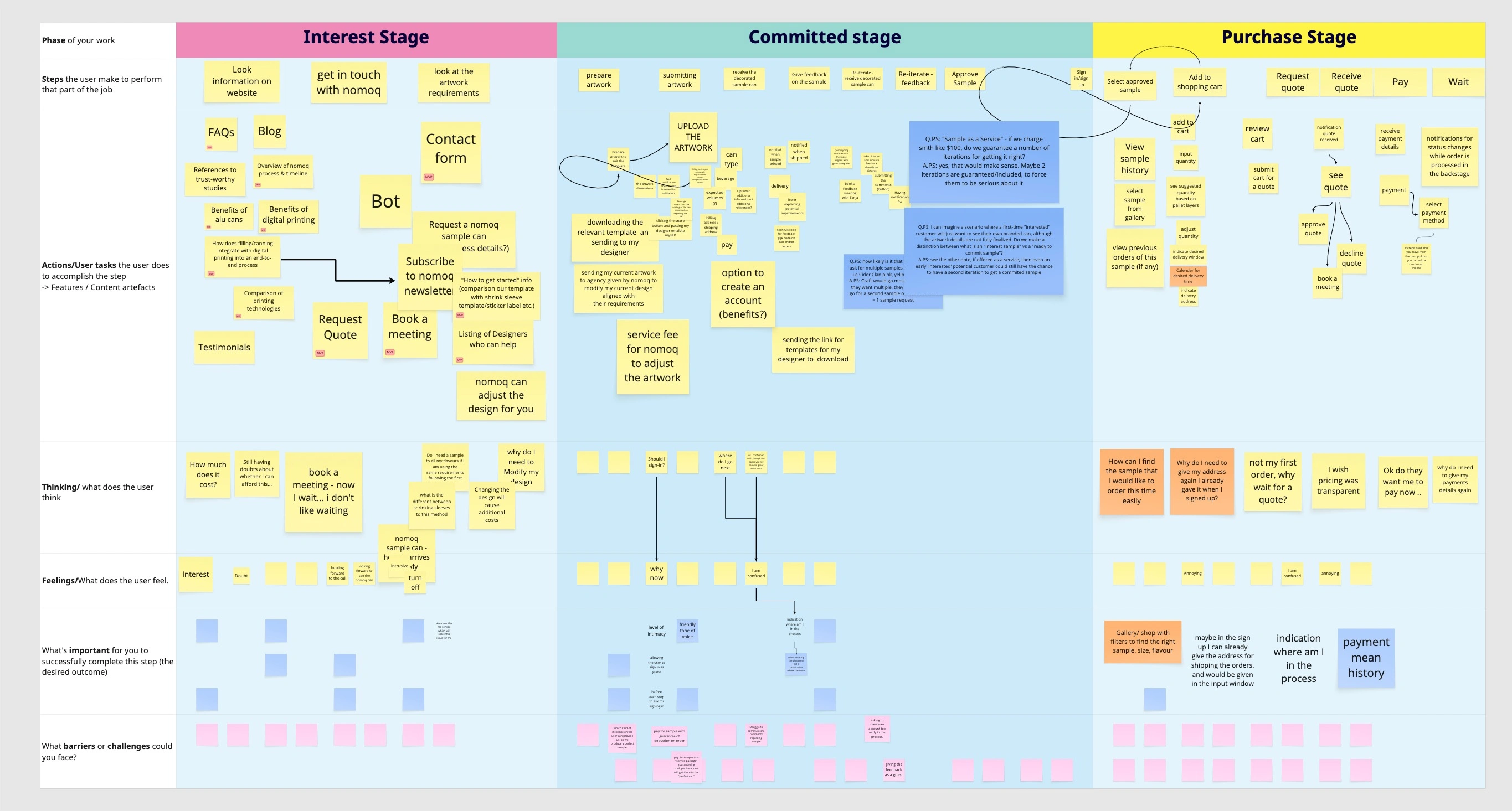 NOMOQ, a Swiss start-up, provides digitally printed aluminum cans with no minimum order. As a UX/UI Designer, I enhanced the user experience and brand identity by crafting a cohesive visual strategy, creating user personas, mapping user journeys, and designing low-fidelity wireframes for user-centered early-stage validation.