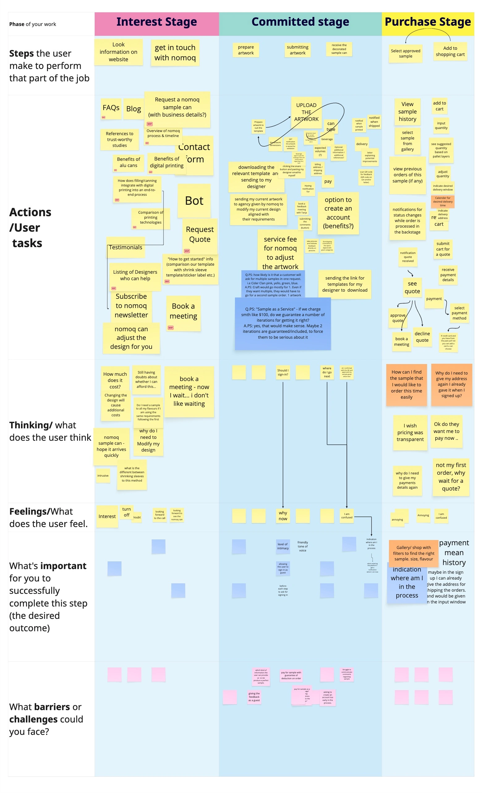 I refined the NomoQ user story to cater to both small and large businesses, ensuring a smooth process from customization to timely delivery. Users compare products and pricing, request samples, finalize orders with clear pricing, and track production and shipping for on-time, defect-free delivery.